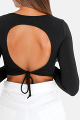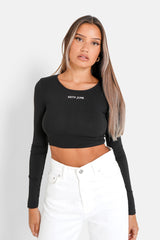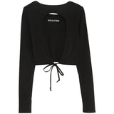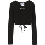 Geripptes Material, rückenfrei. Kordelzug im Rücken, gesticktes Logo in der Mitte der Brust.