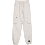 Sixth June-Cargohose für Damen mit geknöpften Seitentaschen mit Bündchen. Weiter Schnitt, Gummizug in der Taille, Gummizug an den Knöcheln, Gesäßtaschen. Beigefarbenes Modell.