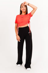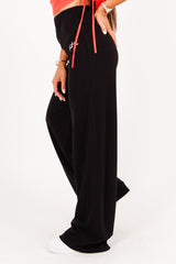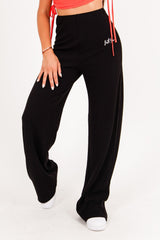 Hoch taillierte Hose für Damen der Marke Sixth June. Logodruck auf dem linken Bein. Gummizug in der Taille. Weiter Schnitt. Schwarzes Modell.
