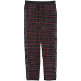 Sixth June-Schottenhose für Herren aus Flanell. Klassischer 7/8-Schnitt, Satin-Seitenbänder, Gesäß- und Seitentaschen, Gummizug und Kordelzug in der Taille. Rot-schwarzes Tartan-Modell.