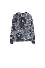 Damenpullover von Sixth June mit Bandana-Print auf dem gesamten Kleidungsstück. Klassischer Schnitt, Rundhalsausschnitt, Kängurutasche und kleiner Saum an den Ärmeln. Schwarzes Modell mit weißem Aufdruck.