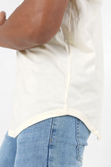 Langes T-Shirt mit abgerundetem Saum. Hellgelb