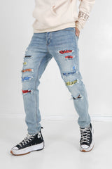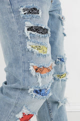 Bunte Einsätze mit Bandana-Mustern auf der Vorderseite. Taschen vorne, hinten, Knopfverschluss.