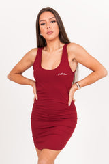 Sixth June-Kleid für Damen mit aufgesticktem Signature-Logo auf der Vorderseite. Enger Schnitt und Midi-Länge, abgerundeter Saum und leicht geripptes Material. Burgunderrotes Modell.