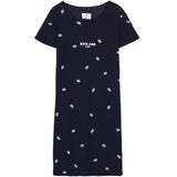 Damenkleid von Sixth June mit vollflächigem Mini-Sixth June-Logo und zentralem Sixth June Paris-Aufdruck. Klassischer Schnitt, Midi-Länge und Ärmelsäume. Schwarzes Modell.