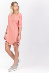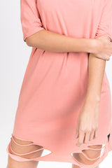 Hellrosa, zerrissenes T-Shirt-Kleid
