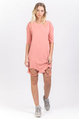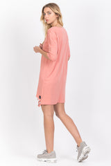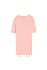 Damen-T-Shirt-Kleid von Sixth June mit Rissen unten und weitem Schnitt. Überschnittene Schultern, mittellange Ärmel mit kleinem Saum. Helldunkelrosa Modell.
