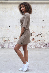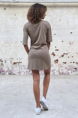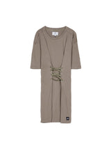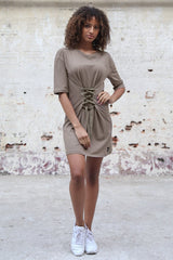 Taupefarbenes T-Shirt-Kleid mit Schnürung vorne