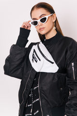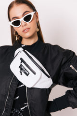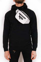 Weiße Gürteltasche mit Logo und zwei Taschen