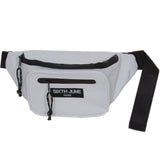 Gürteltasche „Sixth June“ für Damen und Herren, mit „Sixth June Paris“-Stickerei auf der Vorderseite. Zwei Reißverschlussfächer, verstellbarer Schultergurt, sicherer Verschluss. Weißes Modell.
