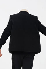 Sherpa-Stoff, Schafwolleffekt, weich und flauschig. Seitentaschen vorne, Reißverschluss, kurzer Kragen.