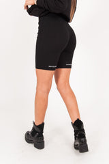 Damen-Leggings der Marke Sixth June. Aufschrift „6. Juni“ auf der Rückseite. Hoher Bund mit breitem Gummizug in der Taille. Enger Schnitt im Leggings-Stil, Midi-Länge. Schwarzes Modell.