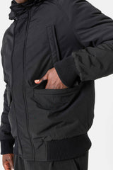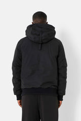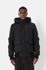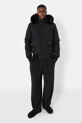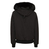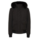 Abnehmbare Kapuze mit Befestigungslasche hinten und abnehmbarem Kunstfell. Große Vordertaschen mit Magnetverschluss, Taschen mit Magnetverschluss auf Brusthöhe, zentraler Reißverschluss und Magnetverschluss, gerippte Bündchen und elastischer Bund.