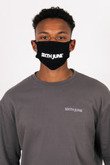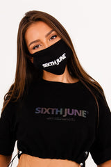 Gemischte Maske für Erwachsene. Sixth June-Logodruck auf der Vorderseite. Bei diesem Gerät handelt es sich weder um ein Medizinprodukt im Sinne der Verordnung EU/2017/745 (chirurgische Masken) noch um eine persönliche Schutzausrüstung im Sinne der Verordnung EU/2016/425 (Filtermasken vom Typ FFP2). Klassischer Schnitt. Schwarzes Modell.
