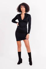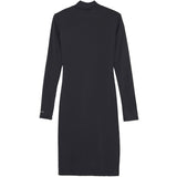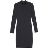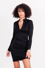 Langärmliges Kleid für Damen der Marke Sixth June. Lycra-Material, weich und leicht glänzend. Reißverschluss vom Kragen bis unter die Brust. Halbhoher Kragen. Enge Passform, Midi-Länge. Schwarzes Modell.