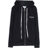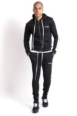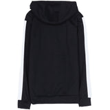 Herren-Sweatshirt von Sixth June mit Kapuze, Bändern an den Ärmeln und Sixth June Paris-Stickerei vorne auf Brusthöhe. Schmale Passform, Reißverschluss und übergroße Kordelzüge. Schwarzes Modell mit weißen Streifen.