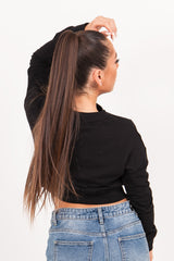 Schwarzes, reflektierendes, bedrucktes, kurzes Sweatshirt