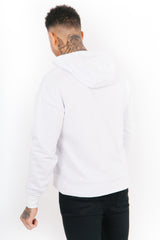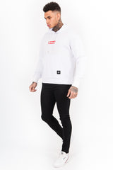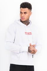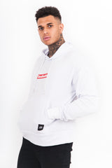 Herren-Sweatshirt von Sixth June mit Sendnudes-Aufdruck auf der Vorderseite. Klassischer Schnitt mit überschnittenen Schultern, Kapuze und Kängurutasche. Weißes Modell mit rotem Aufdruck.