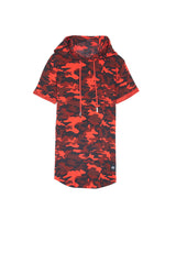 Sixth June T-Shirt für Herren mit durchgehendem Tarnmuster. Schmale Passform, mit Kapuze und abgerundeter Form unten. Rotes und schwarzes Modell.