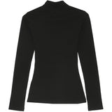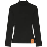 Langärmliges T-Shirt für Damen der Marke Sixth June. Geripptes Material. Orangefarbener Aufdruck auf der Vorderseite, hoher Kragen. Klassischer Schnitt, leicht eng. Schwarzes Modell.