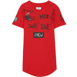 Sixth June T-Shirt für Männer mit Schriftzug und Mustern auf der Vorderseite (Crew, Wild, Sixth June...). Klassischer Schnitt, „CREW“-Schriftzug auf der Rückseite, abgerundeter Saum, Rundhalsausschnitt. Rotes Modell.