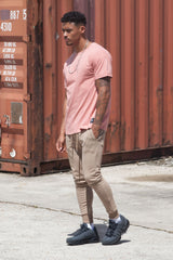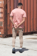 Sixth June Herren-T-Shirt mit überschnittenen Schultern. Weiter geschnitten als ein klassisches T-Shirt und Rundhalsausschnitt. Schlichtes dunkelrosa Modell.