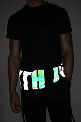 Schwarzes T-Shirt mit reflektierendem Petroleum-Print