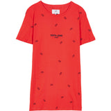 Herren-T-Shirt von Sixth June mit Mini-Allover-Logoprints und der Aufschrift „Sixth June Paris“ in der Mitte. Klassischer Schnitt und Saum an den Ärmeln. Rotes Modell.