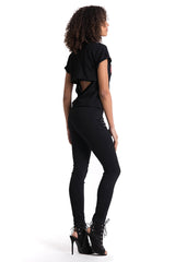 Schwarzes offenes T-Shirt mit Wespenrosen