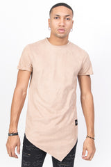 Herren-T-Shirt von Sixth June mit spitzem Schnitt vorne und hinten und weichem Wildledermaterial. Klassischer Schnitt mit Saum an den Ärmeln. Beigefarbenes Modell.