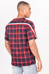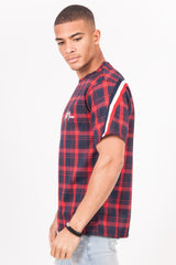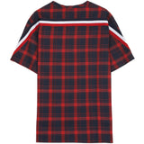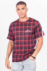 Rot-blaues Schottenkaro-T-Shirt mit charakteristischem Logo