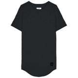 Abgerundeter Saum, Bündchen an den Ärmeln.