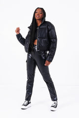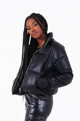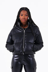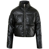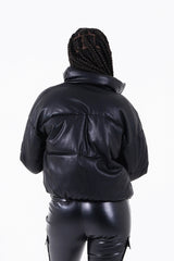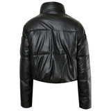 Kurze Daunenjacke aus Kunstleder in Schwarz