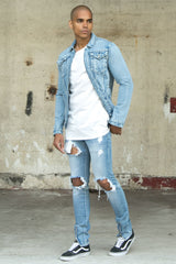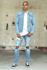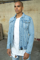 Sixth June Herren-Jeansjacke mit Reißverschluss. Blaues Modell.