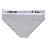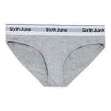 Gummiband in der Taille, gewebte Inschrift „Sixth June“.