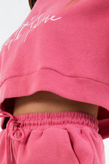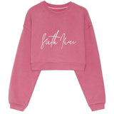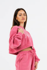 Sixth June sweater for women. Warm and thick mesh, soft fleece effect with Signature SIXTH JUNE embroidered on the chest. Rounded collar, ribbed cuffs. Regular and cropped cut. Pink design.