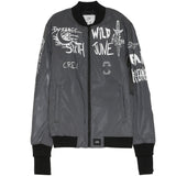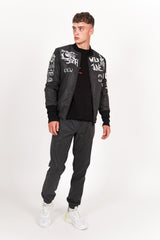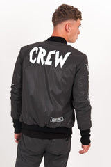 Sixth June bomber for men. Totaly reflective (shiny effect under the light). Prints and inscriptions on front (crew, wild, Sixth June...) and CREW on the back. Zip fastening, side pockets, inside pocket, ribed cuffs and collar, zip detail on the left arm. Regular cut. Black design.