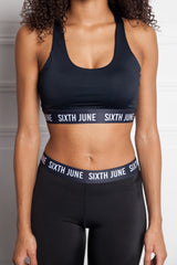 Bra black Sixth June Women. Activewear Collection. Band with Sixth June writing. Low back cut.