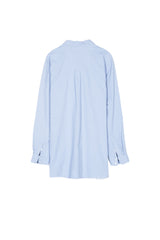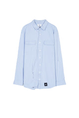 Sixth June men shirt with little rips and two chest cargo pockets. Regular cut with asymmetric bottom. Blue model.