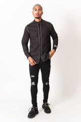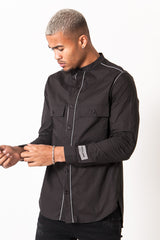 Sixth June shirt for men. Reflective border on shoulders and the buttonhole. Buttoned pockets on the front. Regular cut. Black design.