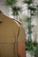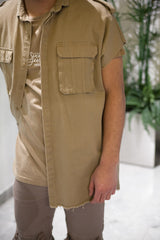 Sleeveless jacket beige Sixth June Men. Safari model. Pockets on the front. Frayed edges.
