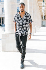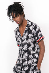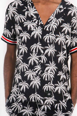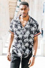 Sixth June short-sleeve shirt for men with mini palm trees printed all-over. Short and oversize cut, buttons fastening, three-coloured bands, revere collar and round hem. Black and white design.