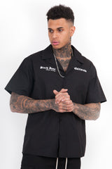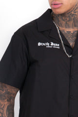 Sixth June short-sleeve shirt for men with Santa Monica and Sixth June beach printed on the back. Oversize cut, button fastening, revere collar, Sixth June, summer collection, and california printed to front in a gothic style. Black design.