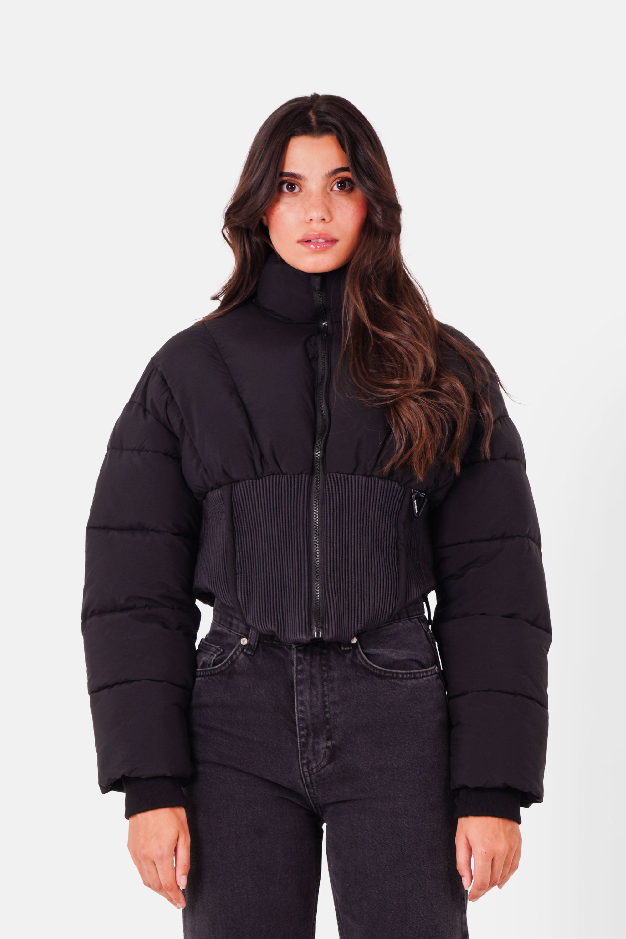 Corset effect at the base of the down jacket, Sixth June signature carabiners at the front. Logo printed at the back of the neck, interior zipped pocket, hook for mini bag at the front, lining (100%) polyester.