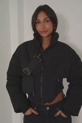 Corset effect at the base of the down jacket, Sixth June signature carabiners at the front. Logo printed at the back of the neck, interior zipped pocket, hook for mini bag at the front, lining (100%) polyester.