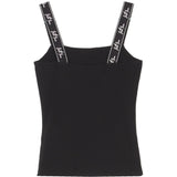 Sixth June tank top for women with branded straps. Skinny cut and Sixth June signature logo printed on the straps. Black design.