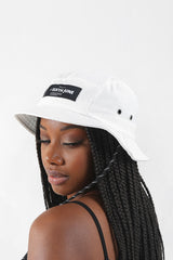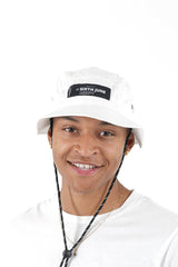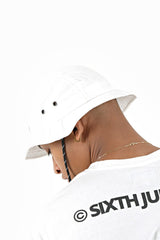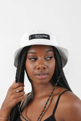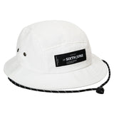 Sixth June unisex bucket hat. Adjustable drawcord. Classic cut. Off-white design.