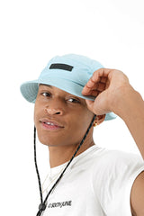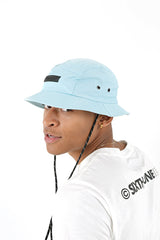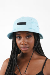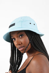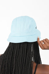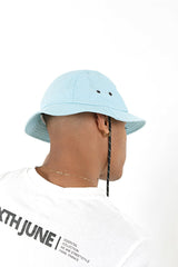 Sixth June unisex bucket hat. Patch embroidered on the front. Adjustable drawcord. Classic cut. Light blue design.