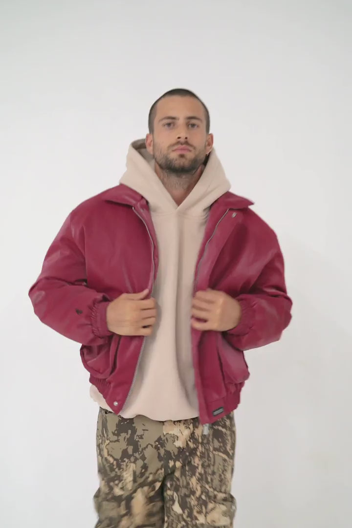 Boxy cut with elastic waist and cuffs, zip and snap closure, logo patch at the back collar.