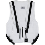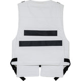 Sixth June tactical vest for men and women made of a reflective fabric. Regular and short cut, zip fastening, clasp fastening on the front and the sides, adjustable straps and reflective bands on the back. White and black design.